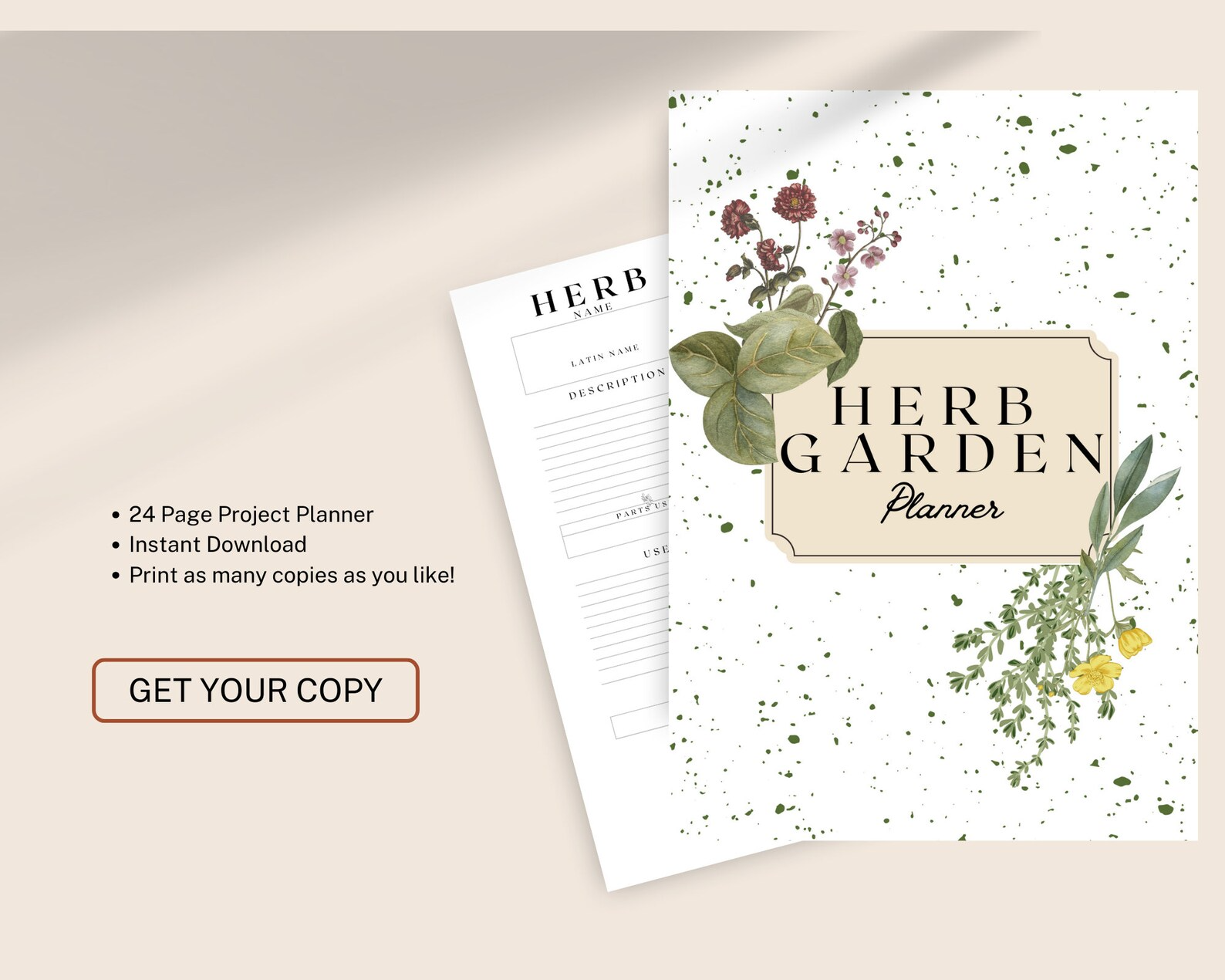 Herb Garden Planner PDF, Medicinal Herb, Printable Planner,Digital Planner